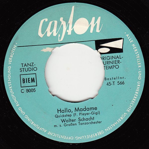 ?? 57....45-T 566....Walter Schacht m. s. Großen Tanzorchester..Hallo, Madame/Beginn ich zu träumen