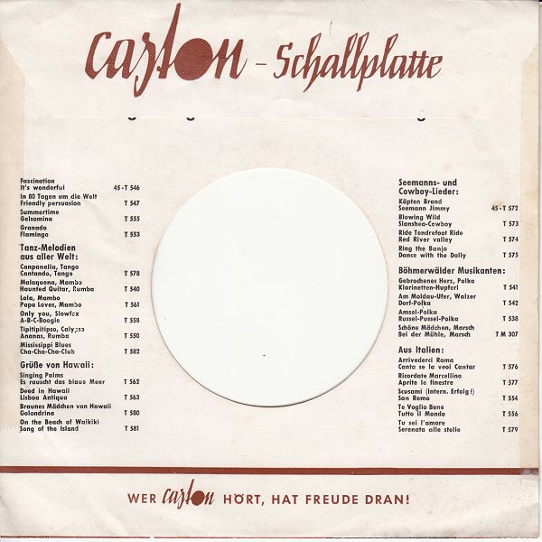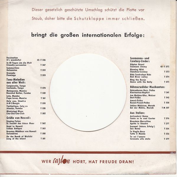 02 57....OBL 37-29086....Walter Schacht und sein Blasorchester..Tanz auf der Tenne Snuten un Poten Oh, Hannes wat 'n Haut Herrn Pastor sin Koh Lott' is' dod Wenn hier en Pott mit Bohnen steiht/Er wollte Vögel fangen in dem Wald (Heimliche Liebe) Fohr mi mol röber Schön ist die Liebe im Hafen Hein spielt abends so schön auf dem Schifferklavier Wenn am Sonntagabend die Dorfmusik spielt