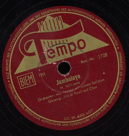 Tempo-Schellacks (3709 "Das Jodeln In Den Bergen"-1952 & Das Tempo-Tanz-Orchester, 3719 "Zucker-Lilli (Sugarbush)"-1952 & PETER HARDT & TOMMY ALSON mit Solisten, 3725 "Försterliesel"-1952 & GERD SCHOLLER, 3728 "Jambalaya"-1952 mit Chor),