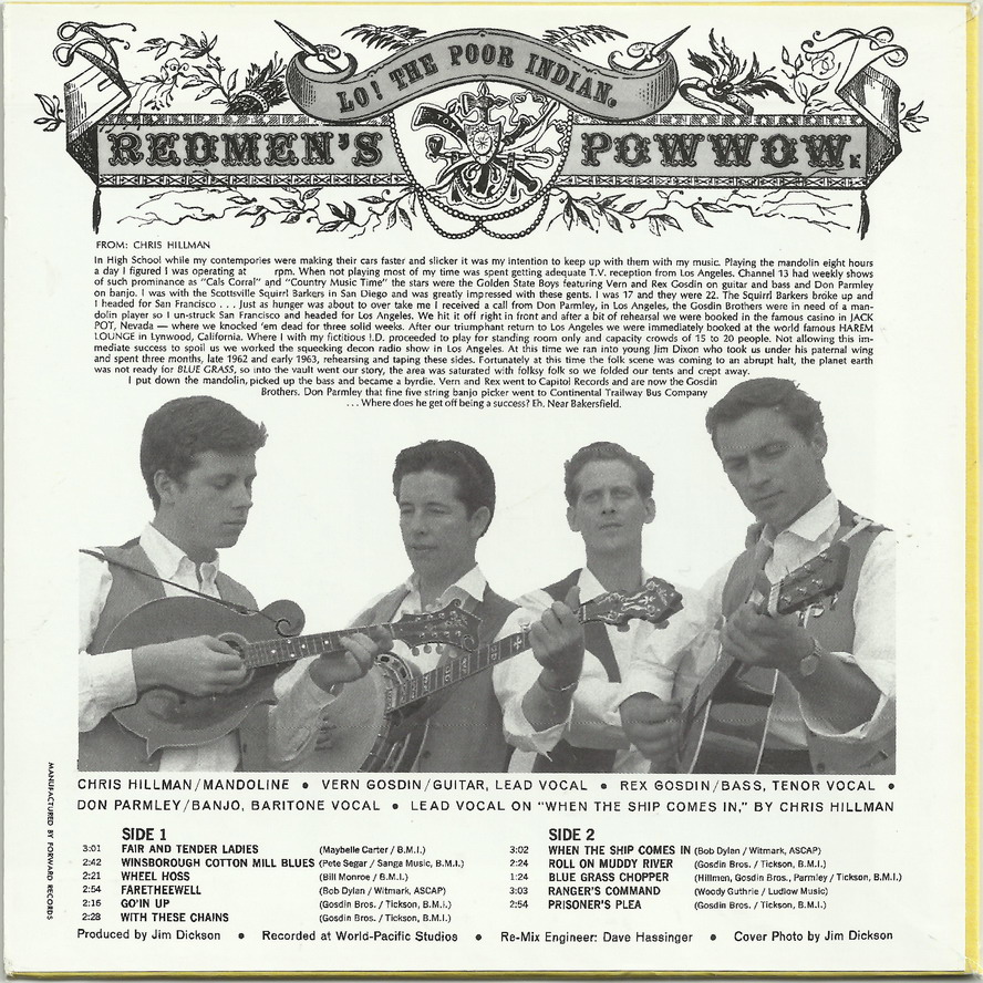 The Hillmen became quite popular in southern California, appearing frequently on television, a connection that proved very valuable with Don being tapped to play all the incidental banjo music for the huge CBS hit program, The Beverly Hillbillies in the ’60s. Earl Scruggs, of course, played on the show’s prominent theme song.