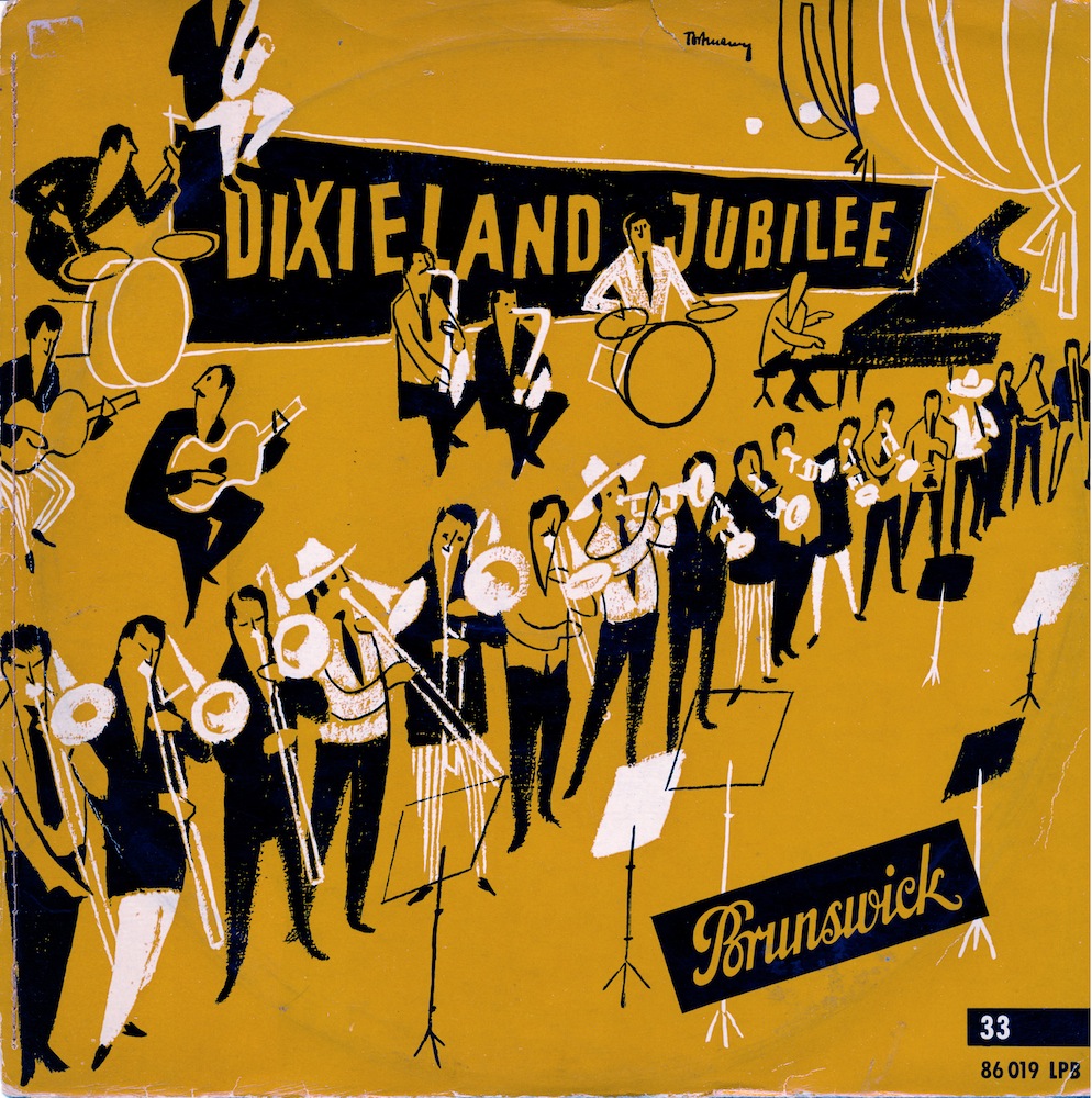Gesucht wird nach dem Namen des Grafikers, der in den 1950er Jahren Langspielplatten und EPs der Marke Brunswick gestaltet hat. Der Name ist darauf leider nicht zu lesen, ähnlich "Tortmuney".