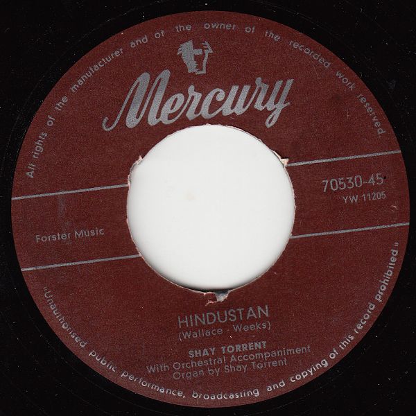 01 55....70530-X45....SHAY TORRENT With Orchestral Accompaniment - Organ By Shay Torrent..San (YW11207)/Hindustan (YW11205)