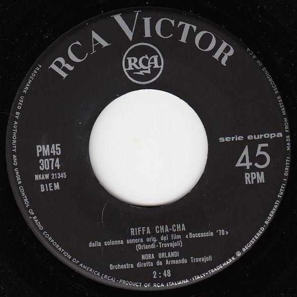 ?? 62....PM45 3074....NORA ORLANDI Orchestra diretta da Armando Trovajoli..Riffa Cha-Cha (NKAW 21345)/Orchestra diretta da Armando Trovajoli..Twist della balera (NKAW 21332)