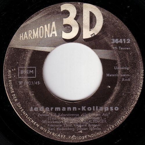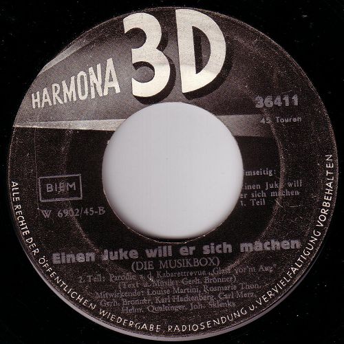 Während man die A-Seite getrost vergessen kann, ist die B-Seite recht originell mit Sprechgesang und einer ansprechenden Begleitung des Orchesters Kurt Werner vorgetragen.