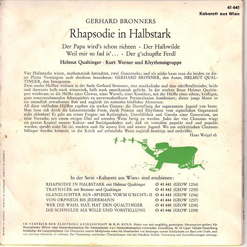manchmal nimmt man auch Platten aus den Cover, die einem auf den Ersten Blick gar nicht interressieren. Wie in diesem Fall als ich auf dem Flohmarkt folgende Helmuth Qualtinger Single, noch dazu mit Bildhülle in die Finger bekam: