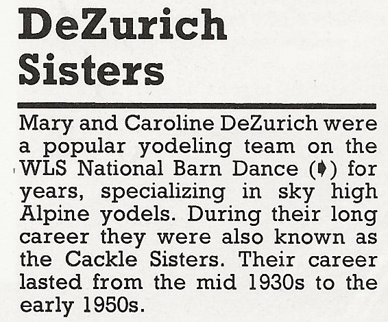 gejodelt. Sie hiessen aber Carolyn DeZurik (24. Dezember 1918