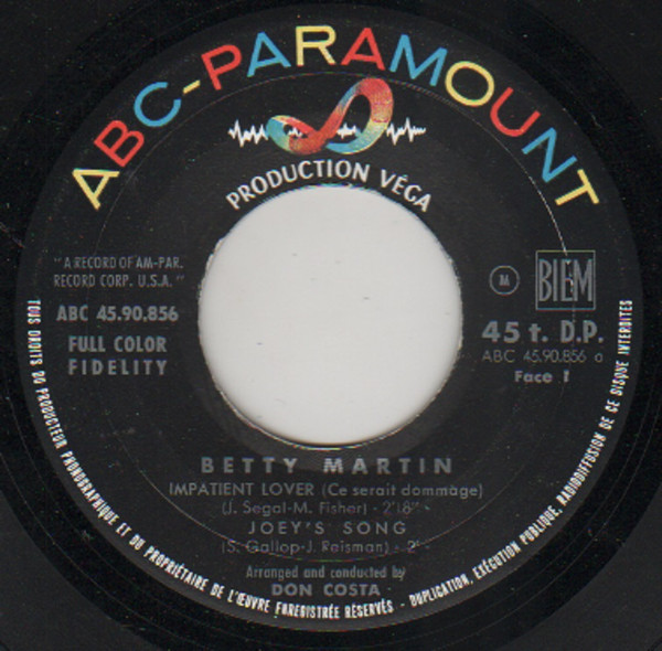 Da BETTY MARTIN mit "Joey's Song" in der gesungenen Textvariante