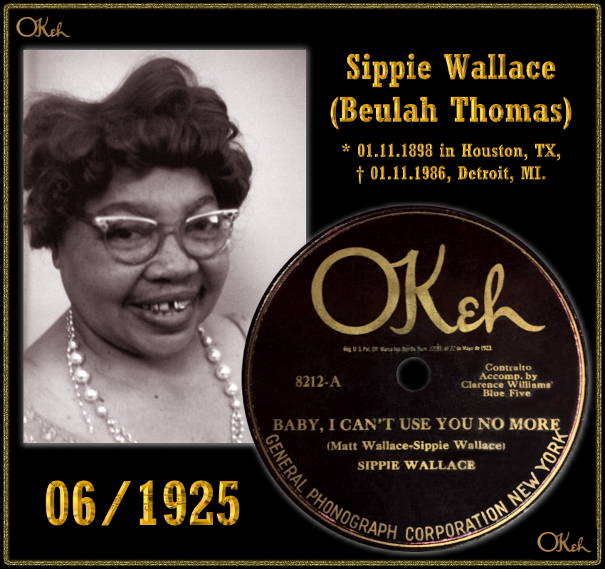 Nicht vergessen werden soll jedoch die am 01. November 1898 in Houston/Texas, geborene Sippie Wallace, die nach vielen erfolgreichen Jahrzehnten als Blues-Sängerin in Detroit am 01. November 1986 im Alter von genau 88 Jahren verstorben ist.
