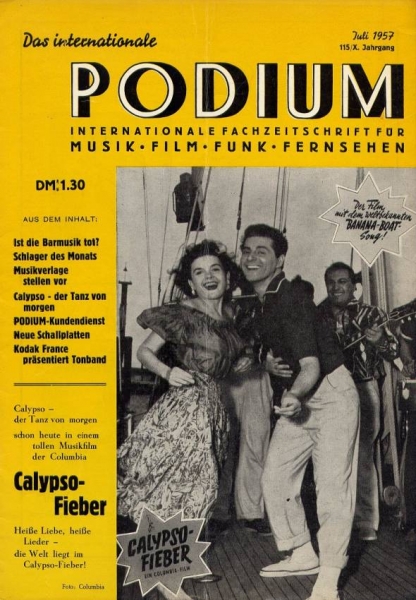 "Ein Oldie-Evergreen, “Banana Boat (Day-O)“, startet in diesem Jahr (1957) mit Harry Belafonte. Die Calypso-Welle hält sich dank Harry Belafonte. Schon aus 1956 gibt es Versionen “The Banana Boat Song“ von The Tarriers, The Fontane Sisters und Sarah Vaughn. Aber Harry Belafonte schlägt sie alle."