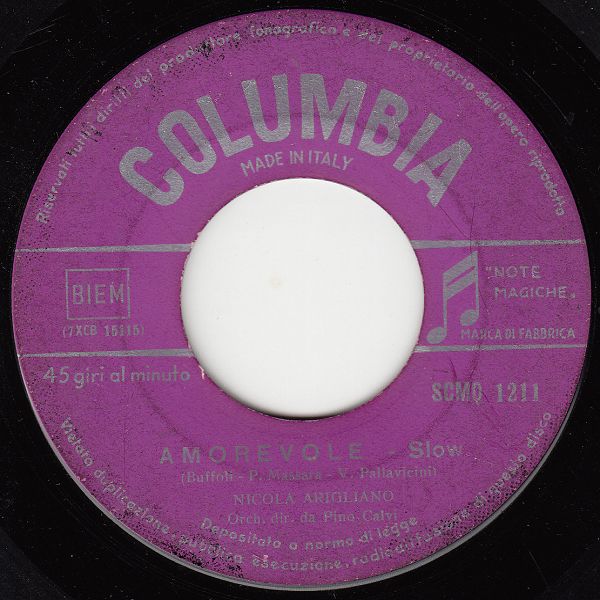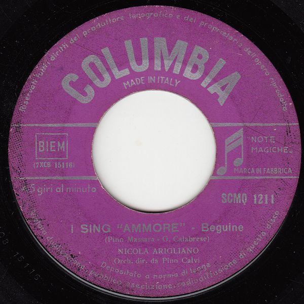 04 59....SCMQ 1211....NICOLA ARIGLIANO Orch. dir. da Pino Calvi..Amorevole (7XCB 15115)/I Sing "Ammore" (7XCB 15116)