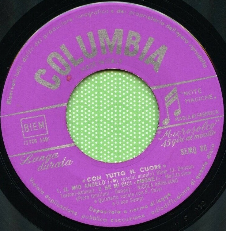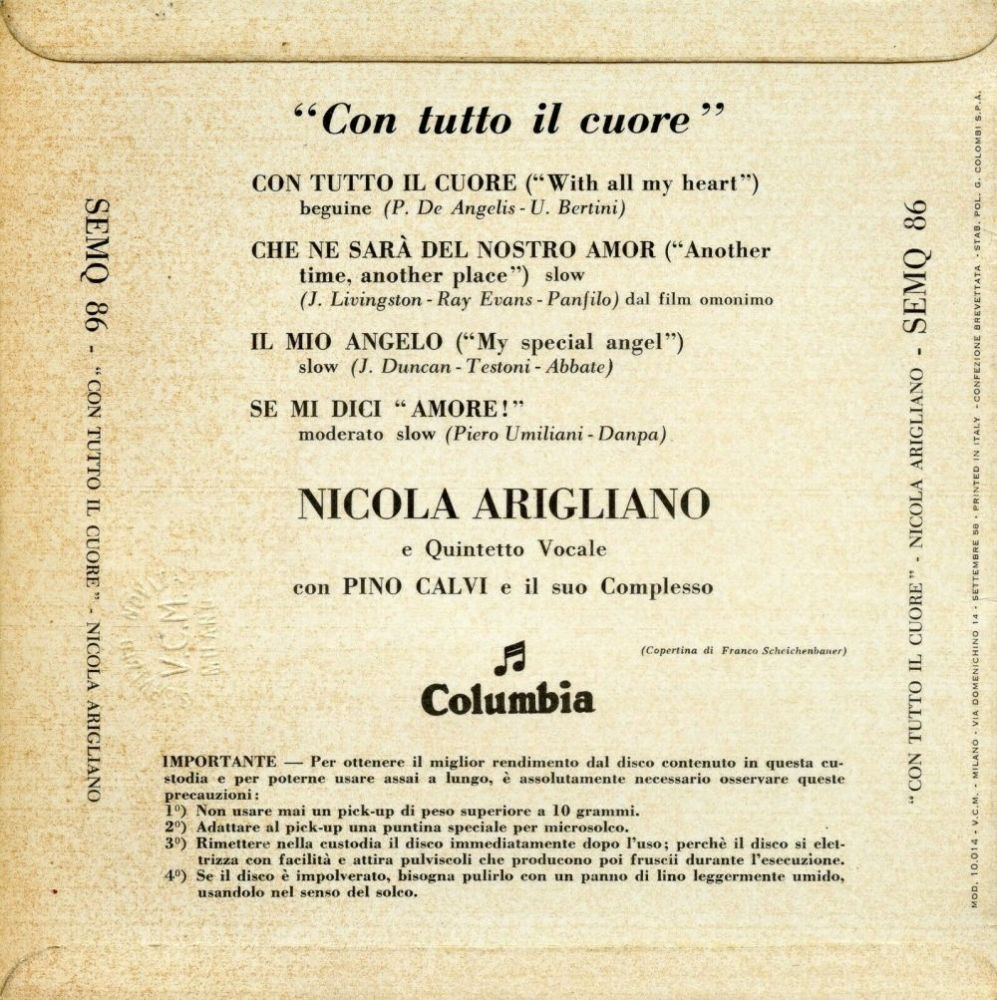 07 58....SCMQ 1122....NICOLA ARIGLIANO con Quintetto Vocale e con Pino Calvi e il suo Complesso..Con tutto il cuore (With all my heart) (7XCB 227)/Se mi dici "Amore!" (7XCB 228)