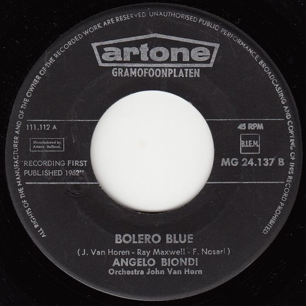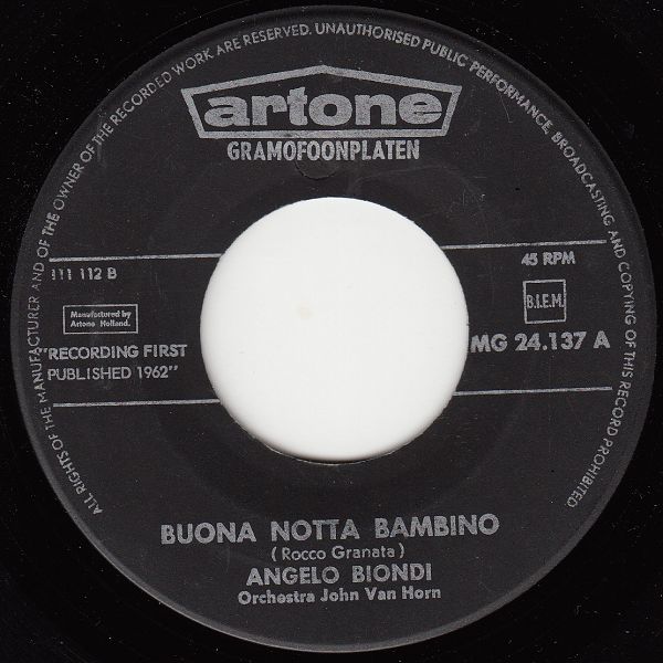 11 62....MG 24.137 A....ANGELO BIONDI Orchestra John Van Horn..Buona Notta Bambino (111.112 B)/ B....Bolero Blue (111.112 A) (B: MOONGLOW 5189)