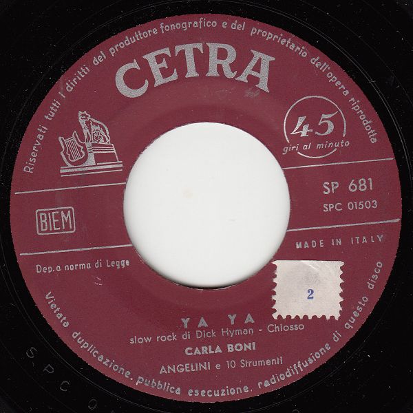 ?? 59....SP 681....CARLA BONI ANGELINI e 10 Strumenti..Ya Ya (SPC 01503)/Por dos besos (SPC 01501)
