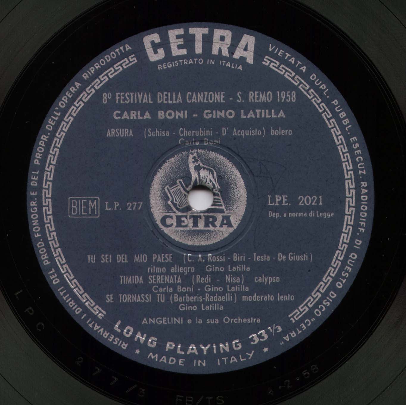 ?? 58....SP 125....GINO LATILLA - ANGELINI e la sua Orchestra..Tu sei del mio paese (SPC 0278)/CARLA BONI - ANGELINI e la sua Orchestra..Io sono te (--------)