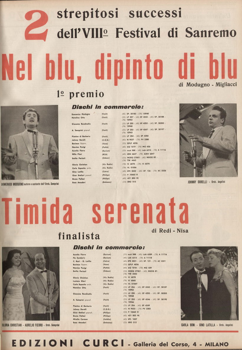 ?? 57....SP 57....CARLA BONI - GINO LATILLA - ANGELINI e la sua orchestra..Picolissima serenata (SPC 0130)/GINO LATILLA - ANGELINI e la sua orchestra..Banana Boat (SPC 0131)
