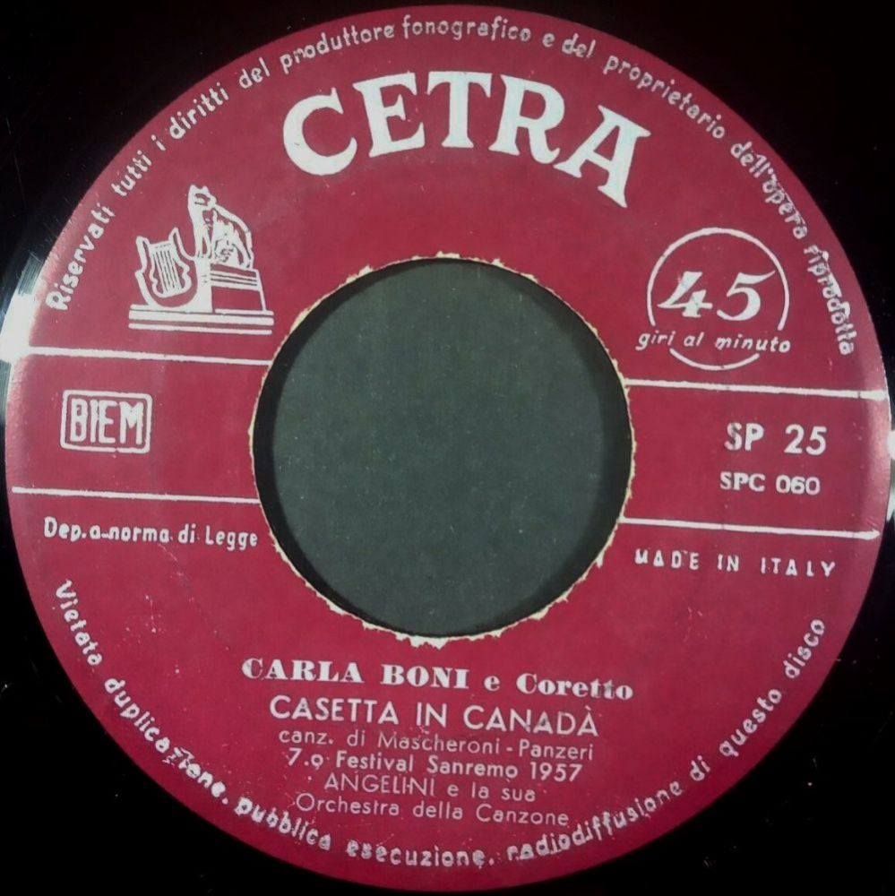 ?? 57....SP 25....CARLA BONI e Coretto ANGELINI e la sua Orchestra della Canzone..Casetta in Canada/GINO LATILLA e DUO FASANO ANGELINI e la sua Orchestra della Canzone..Un filo di speranza
