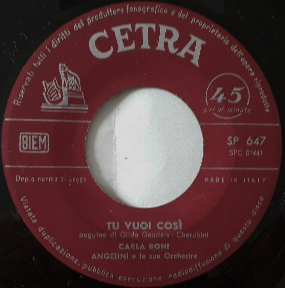 ?? 56....SP 1....CARLA BONI - GINO LATILLA ANGELINI e la sua nuova Orchestra..Baby bu (Hearts of storie)/CARLA BONI ANGELINI e la sua nuova Orchestra..Ciao! (Oho! Aha!)