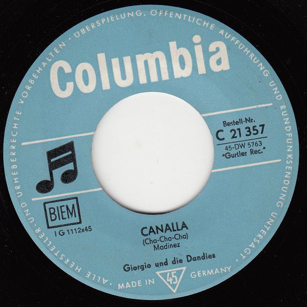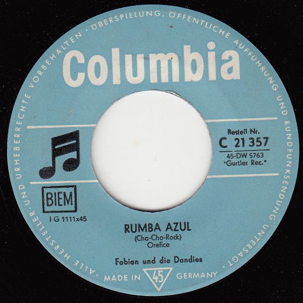 Bei den I Dandies gab es unter anderem einen Fabian und einen Giorgio, die fallweise als Leadsänger eingesetzt wurden. Mehr konnte ich über diese italienische Gruppe leider nicht erfahren. Ein vielleicht nicht sehr wichtiger Hinweis, aber wem es interessiert: Sowohl MUSIC als auch CELSON gehörte den schweizer Brüdern Walter und Ernest Gürtler, die 1948 in Mailand, Italien, ihr erstes Label gründeten und bald den italienischen Plattenmarkt sehr stark beherrschten. Die Dandies wechselten zwar das Label, aber nicht die Firma.