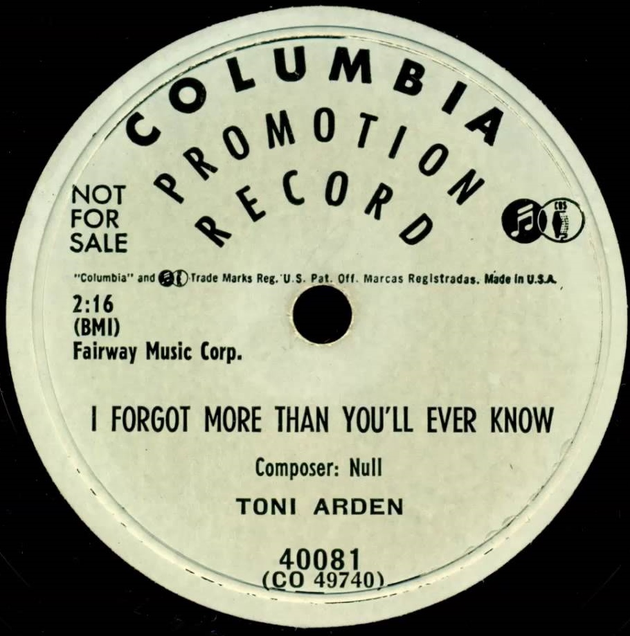 08 53....4-40081....TONI ARDEN..I Forget More Than You'll Ever Know/TONI ARDEN with The Four Lads..Anymore