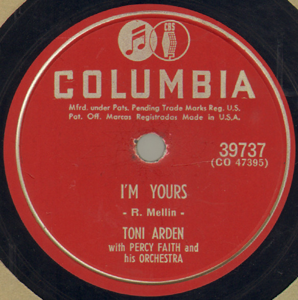 05 52....4-39737....TONI ARDEN with PERCY FAITH & his ORCH. ..I'm Yours (ZSP 9588)/Kiss Of Fire (ZSP 9589)