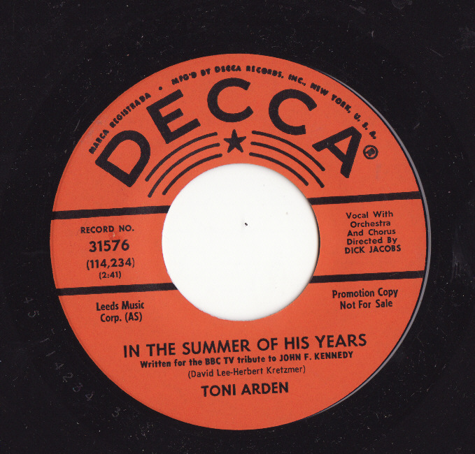 ?? 63….31576….TONI ARDEN Vocal With Orchestra And Chorus Directed By DICK JACOBS..In The Summer Of His Years (114,234)/My Heart Is A Chapel (114,235)