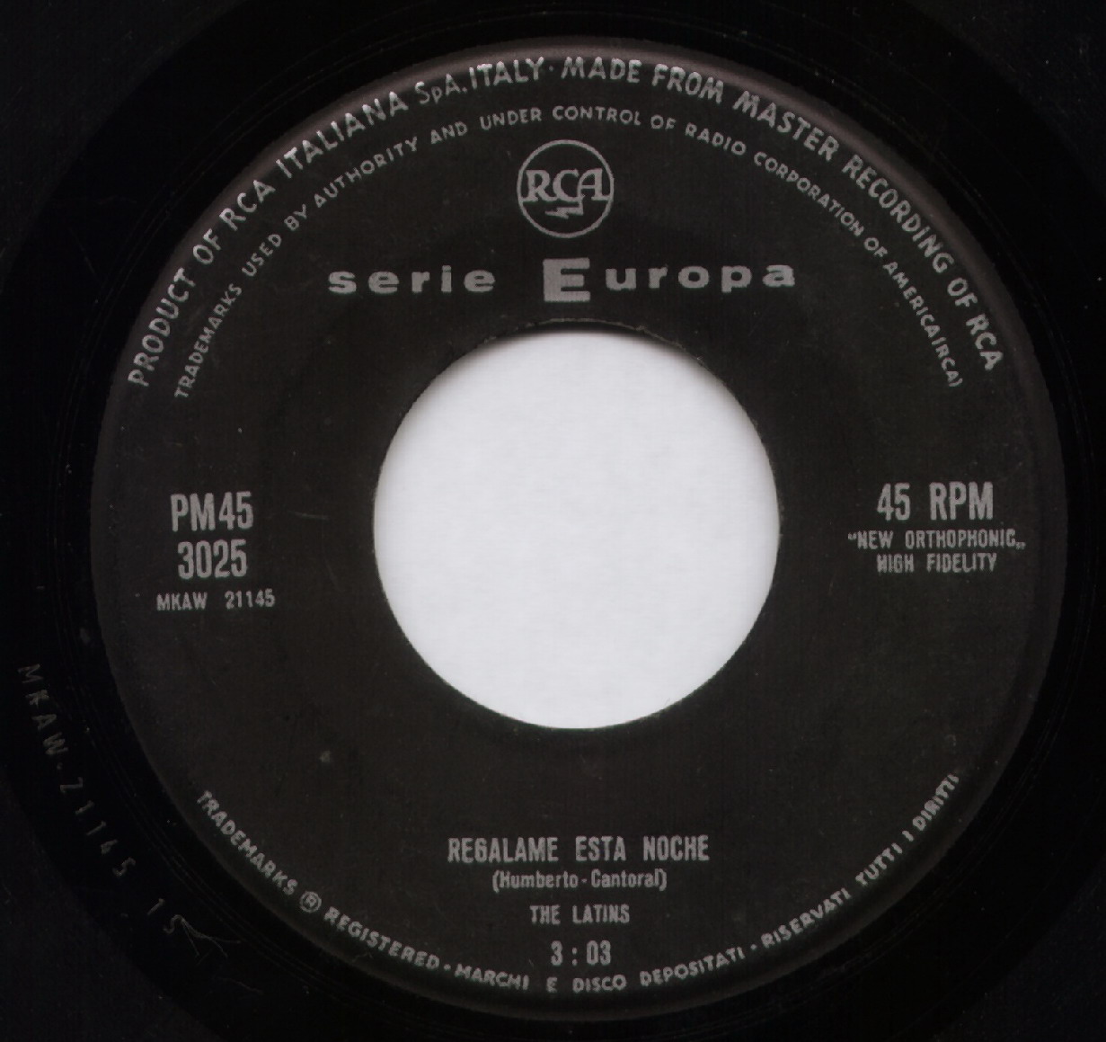?? 61....PM45 3025....THE LATINS..Regalame esta noche (MKAW 21145)/Seven Boys (MKAW 21146)
