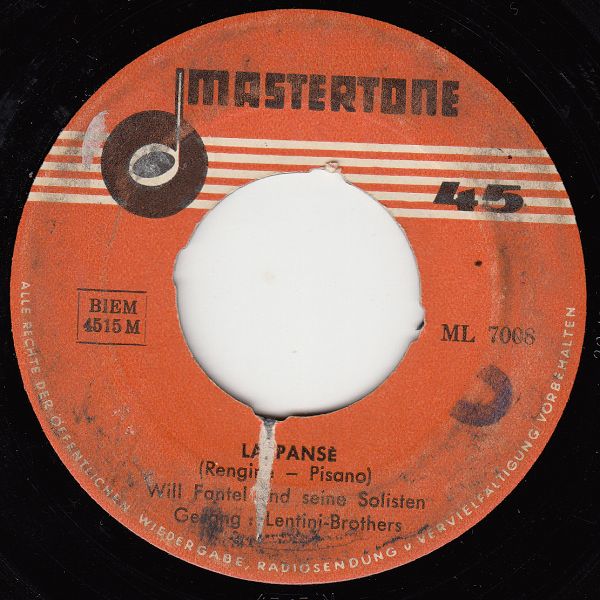 Sowohl im Schlagerfilm "Die Diebin von Bagdad" von Carl Lamac aus dem Jahre 1952 als auch in den Film "Blume von Hawaii" von Géza von Cziffra, der 1953 Premiere hatte, entdeckte ich die Lentini-Brothers als Mitwirkende. Im Ersteren als Palast-Wächter und im Zweiteren als Akrobaten. Ich denke, die Lentini-Brothers waren in dieser Zeit Show- und Varietee-Künstler, die sehr viel herumgekommen sind und ich bin fest davon überzeugt, dass es sich bei den Sängern, die etwa Ende 1956 in Wien mit Will Fantel einige Aufnahmen einspielten, ebenfalls um diese Show- und Varietee-Künstler handelte. Derzeit ist mir von den Lentinis nur diese eine Single vom Oktober 1956 bekannt.