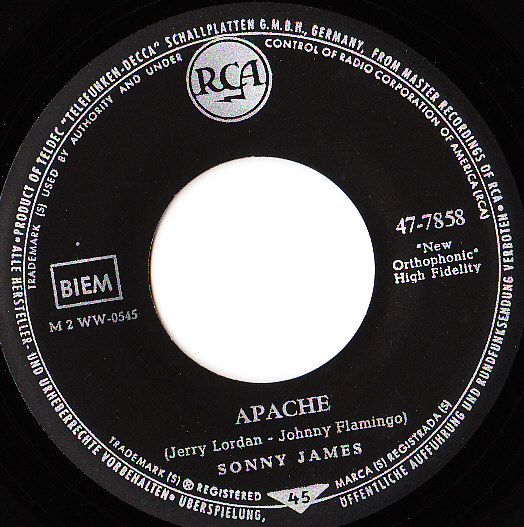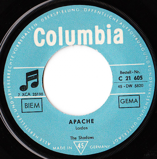 hallo zusammen heute möchte ich euch das original und eine coverversion des titels apache einscannen original von den shadows auf columbia 21605 die deutsche fassung von den fellows auf decca 19130.viel vergnügen und keep rockin' albert