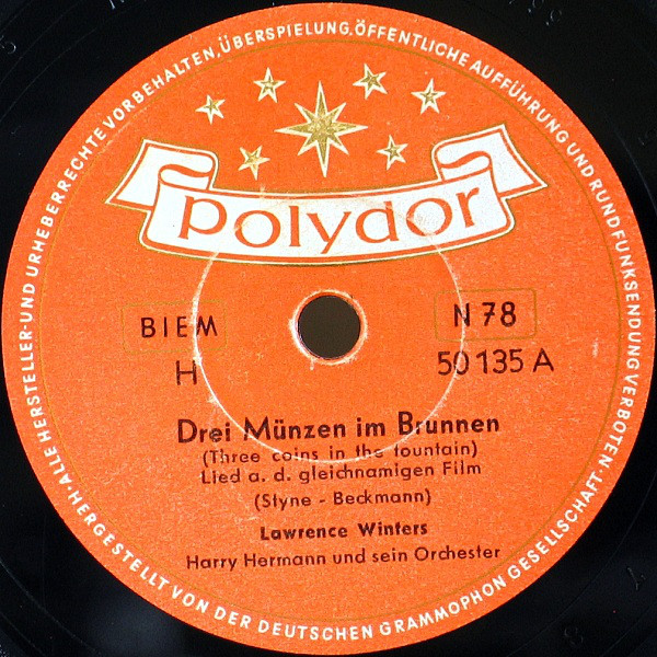 02 56....23 135 A....Lawrence Winters Harry Hermann u. s. Orchester..Drei Münzen im Brunnen (Three coins In the fountain)/ B….Siboney