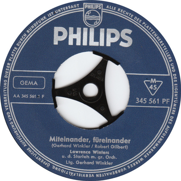 ?? 63….345 561 PF….Lawrence Winters u. d. Starlets m. gr. Orch. Ltg. Gerhard Winkler..Miteinander, füreinander/Geh mit mir durch’s ganze Leben