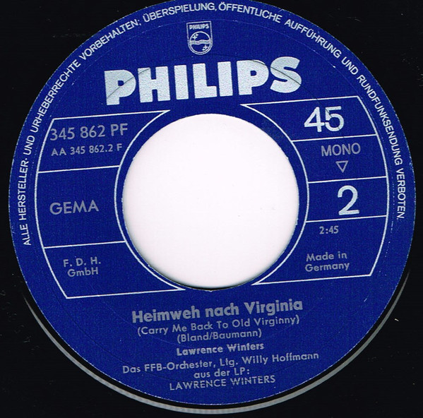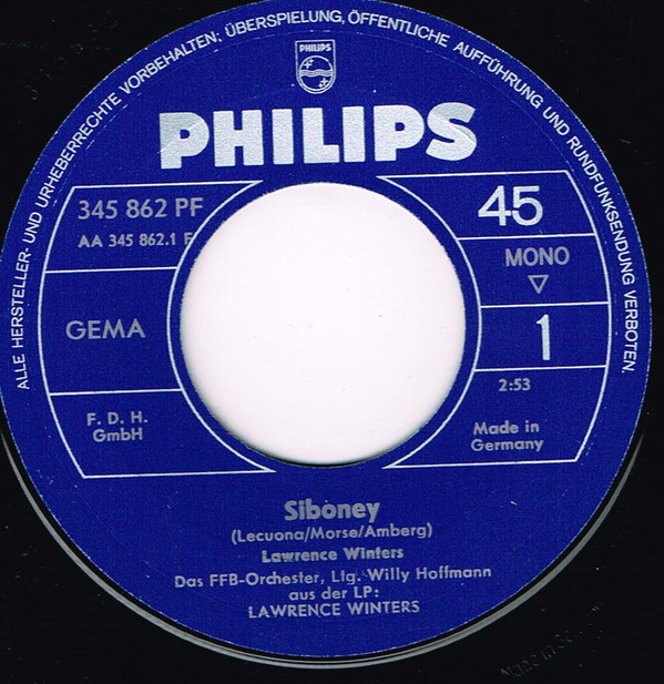 10 65….345 862 PF….Lawrence Winters Das FFB-Orchester Ltg. Willy Hoffmann..Siboney/Heimweh nach