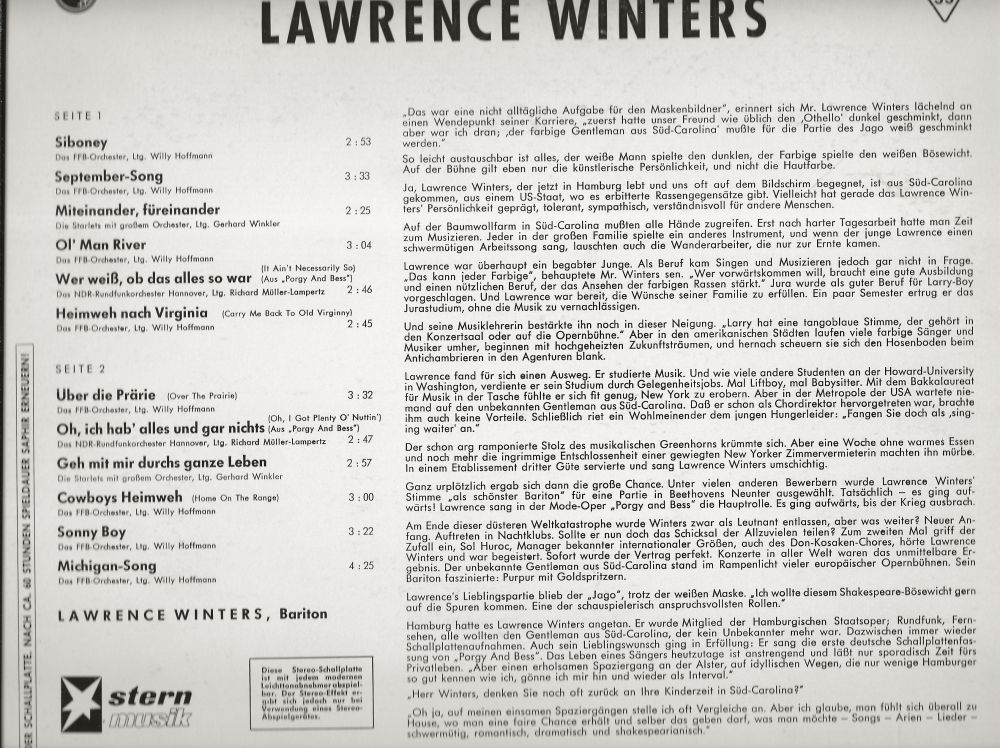 Der Bass-Bariton Lawrence Winters wurde am 12. November 1915 in Kings Creek, South Carolina, als Lawrence Lafayette Whisonant geboren und verstarb am 24. September 1965, kurz vor seinem 50. Geburtstag, in Hamburg, Deutschland, an Krebs.
