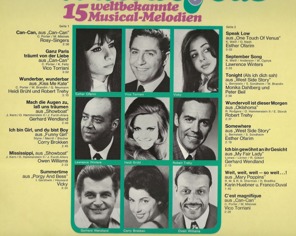 In den Fünfziger- und Sechzigerjahren machte er in Deutschland nebenbei auch einige Platten-Einspielungen, auch Singles und auch teils in deutscher Sprache.