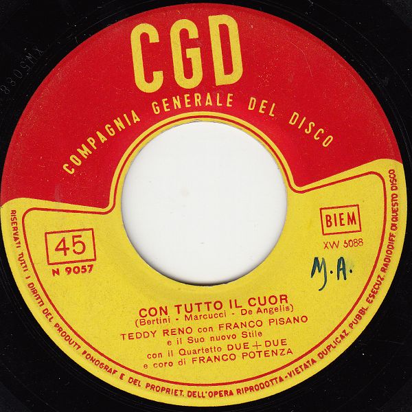 ?? 58....N 9057....TEDDY RENO con FRANCO PISANO e il Suo nuovo Stile con il Quartetto DUE + DUE e coro di FRANCO POTENZA..Con tutto il cuor (XW 5088)/TEDDY RENO con FRANCO PISANO e il suo nuovo Stile..Tre volte baciami (I Love You Forestiera) (XW 5086)