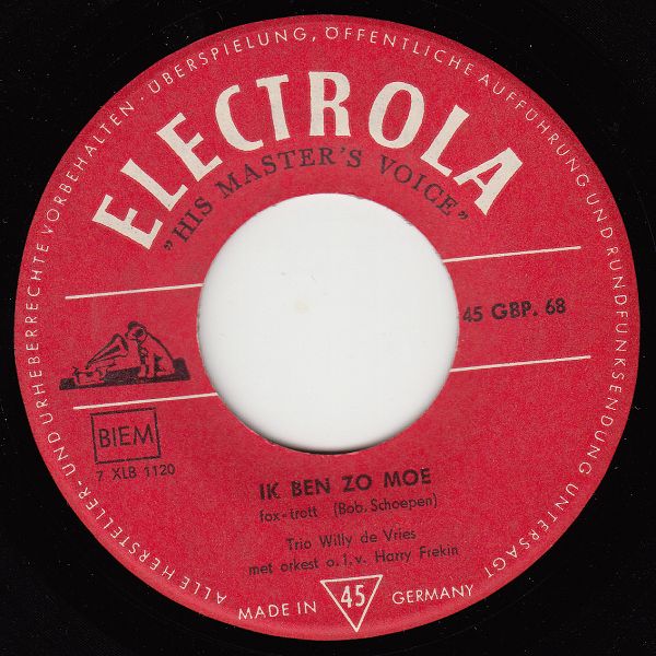 Haargenau den gleichen Vorgang gab es auch bei der ELECTROLA-GESELLSCHAFT mit einer lupenreinen deutschen ELECTROLA-Pressung mit den Daten der belgischen HIS MASTERS VOICE. Es stellt sich ganz genau die gleiche Frage wie bei TELDEC (siehe oben!).