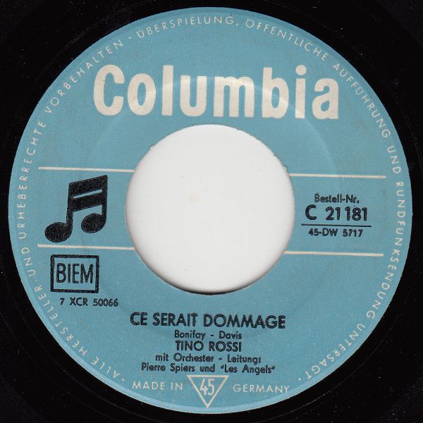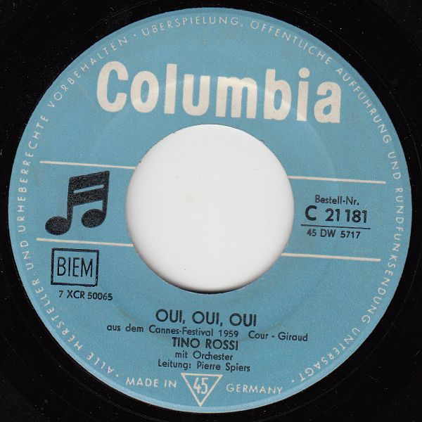 05 59....C 21 181....TINO ROSSI mit Orchester Leitung: Pierre Spiers..Oui, oui, oui/TINO ROSSI mit Orchester Leitung: Pierre Spiers und "Les Angels"..Ce serait dommage (F: COLUMBIA 1078/1079)
