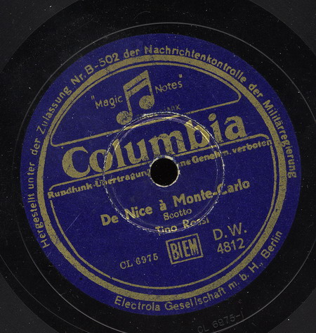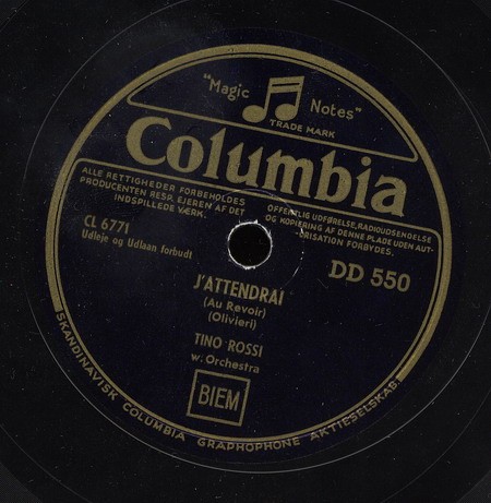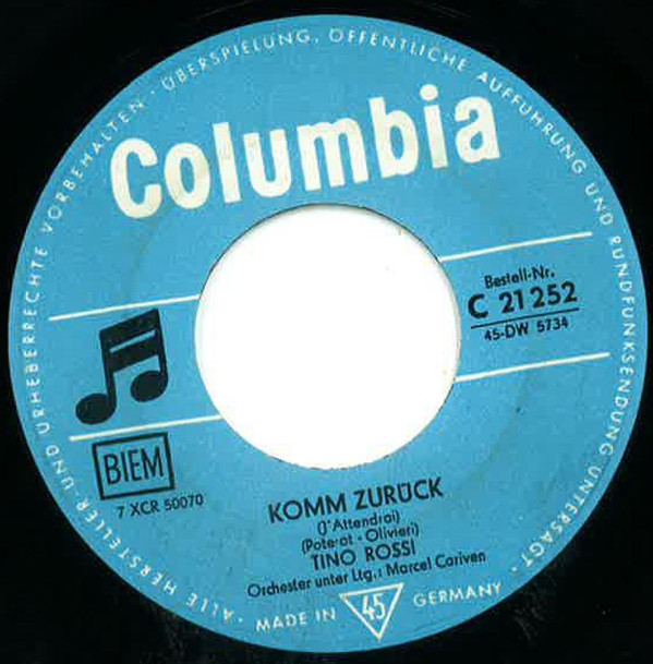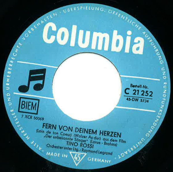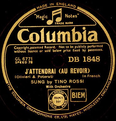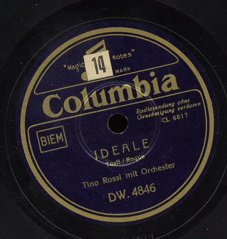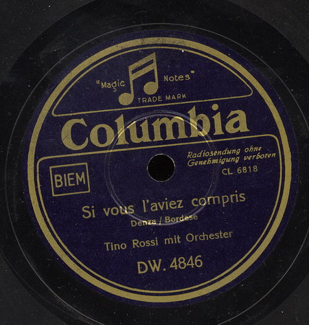 11 59....C 21 252....TINO ROSSI Orchester unter Ltg.: Raymond Legrand..Fern von deinem Herzen (Loin de ton coeur)/TINO ROSSI Orchester unter Ltg.: Marcel Cariven..Komm zurück (J'Attendrai) (F: COLUMBIA 78: LF 233/DF 2436) *)