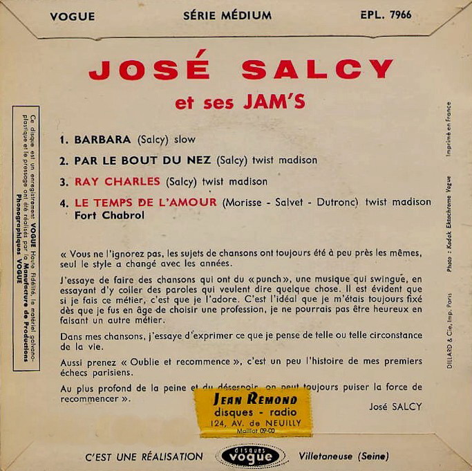 ?? 62....V. 45-979....josé salcy et ses jam's..ray charles - twist madison/par le bout du nez - twist madison