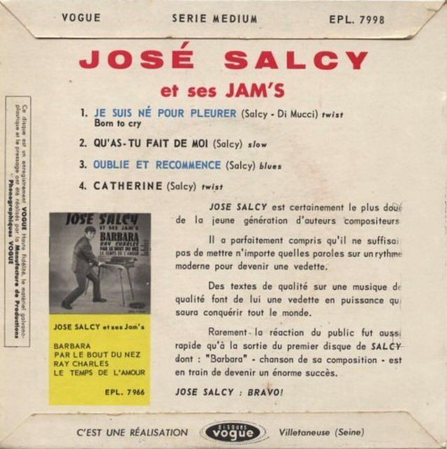 ?? 62....V. 45-992....josé salcy et ses jam's..je suis ne pour pleurer - twist born to cry/qu'as-tu fait de moi - slow