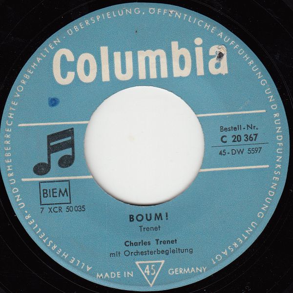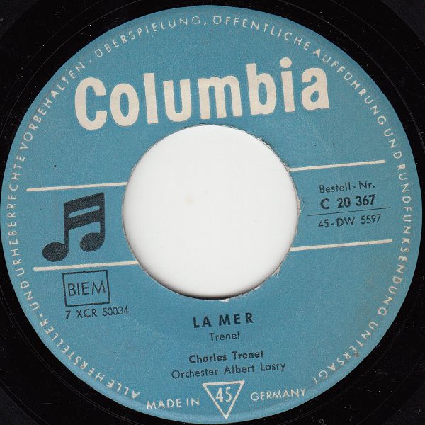 09 58....C 20 367....Charles Trenet Orchester Albert Lasry..La Mer/Charles Trenet mit Orchesterbegleitung..Boum! (F: COLUMBIA ( 78 ) BF 156/DF 2471 dann D: 45 DW 5597)