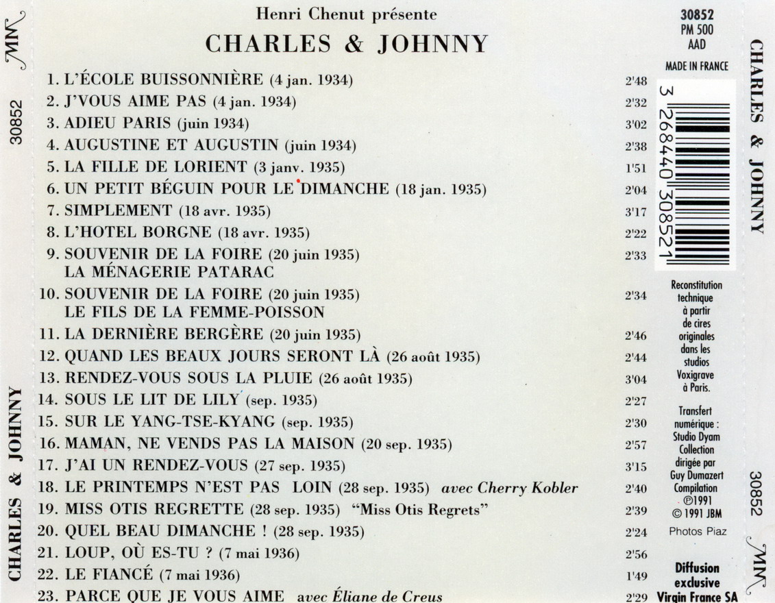 Sein aktiver Einstieg in die Musikszene dürfte 1933 erfolgt sein, als er mit dem aus der französischen Schweiz stammenden Sänger und Komponisten Johnny Hess das Duo Charles et Johnny gründete, welches bis 1937 bestand. Übrigens, "La mer" schrieb er bereits im Jahre 1943, brachte es aber erst im Jahre 1945 selbst auf Schallplatte heraus.