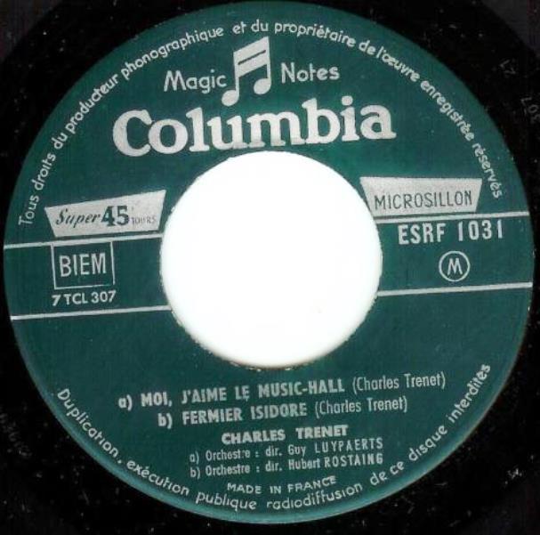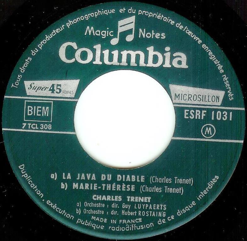 ?? 55....SCRF 168....CHARLES TRENET Orchestre dir. : Guy LUYPAERTS..Moi, j'aime Le Music-Hall (7 XCL 5204)/La java di diable (---------)