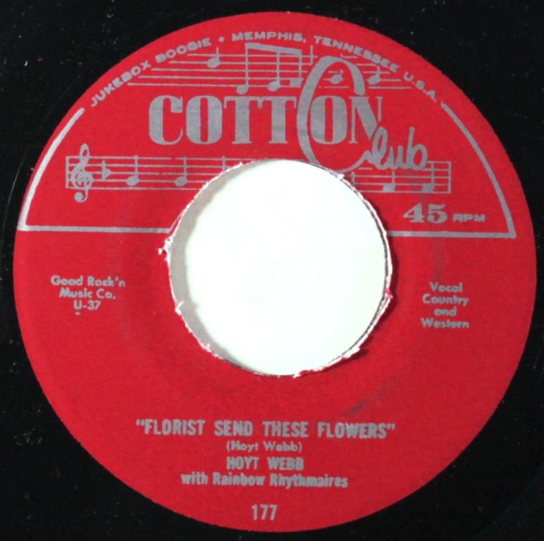Hoyt Webb aus Montgomery, Alabama, hatte eigentlich nur zwei Singles eingespielt, nämlich bei RUBY in Hamilton, Ohio, und auf DIXIE, eine STARDAY-Customer-Pressung, welche aber auch in Ohio bei RITE hergestellt wurde. COTTON CLUB war lediglich eine Übernahme und dazu noch eine unerlaubte, also eine Raubpressung. Bootleg klingt natürlich etwas feiner, zumindest für den Laien. Für die Herstellung ohne rechtliche Grundlage wird einmal das Jahr 1959 und einmal das Jahr 1961 angeführt. Ich traue beiden Daten nicht über den Weg. Record Mart aus England hat, wenn ich richtig informiert bin, die Rechte besessen. Der von Dieter gezeigte Scan ist daher regulär, aber aus den Siebziger-Jahren oder vielleicht noch später. Ich habe das Original, eine RCA-Customer-Pressung, im Netz gefunden und hier angehängt damit man weiß, wie es ausgesehen hat. Als Draufgabe gibt es noch die DIXIE, die ich mir von Terry Gordon (was macht er wohl seit November 2012?) ausgeborgt habe.