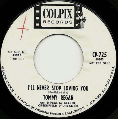 COLPIX 03 64....CP-725....TOMMY REGAN..I'll Never Stop Loving You (10103)/This Time I'm Losing You (10104)