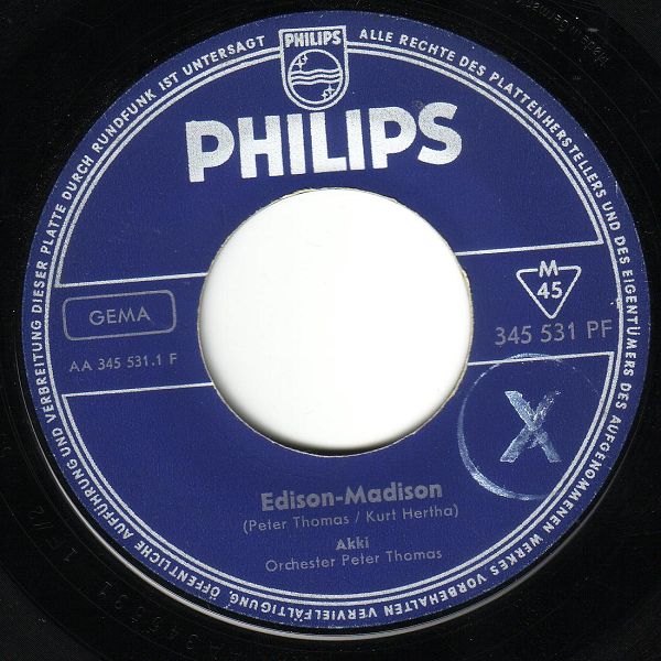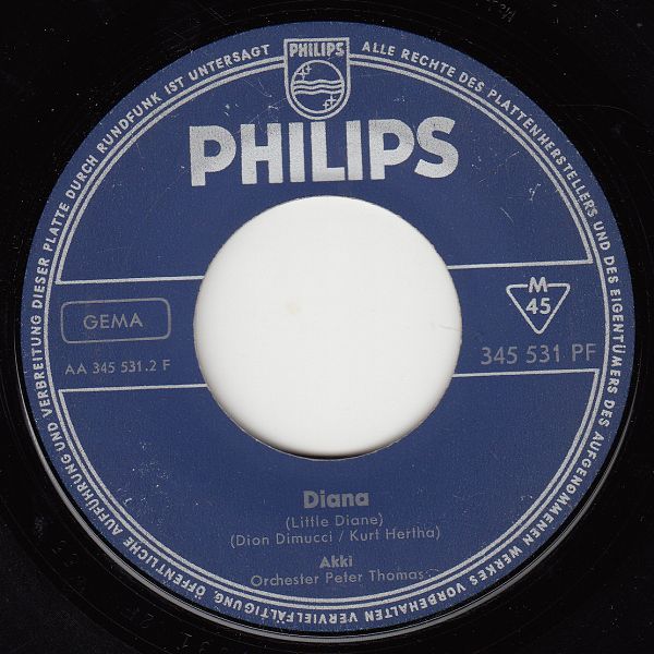 AKKI (JOACHIM HAMANN), Sänger, 1963 Philips (345531 "Edison-Madison"/"Diana (Little Diane)" & Orchester PETER THOMAS, 345549 "Mulero-Bossa-Nova"/"Bossa-Nova")