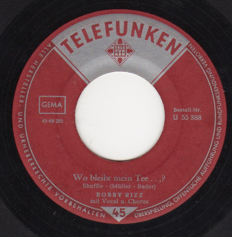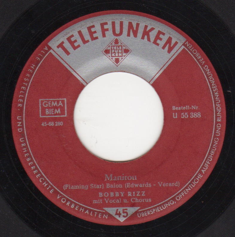 RIZZ, BOBBY (AKKI HAMANN), Sänger, 1961 Telefunken 55388 ("Flaming Star (Manitou)"/"Wo Bleibt Mein Tee ..."), LP Jodelvox 1293, Titel auf 4-teiliger Bear Family Records-LP-Serie "Elvis Hits In Deutsch"-1986
