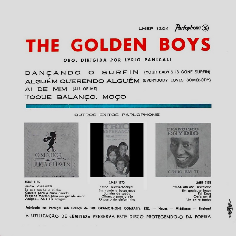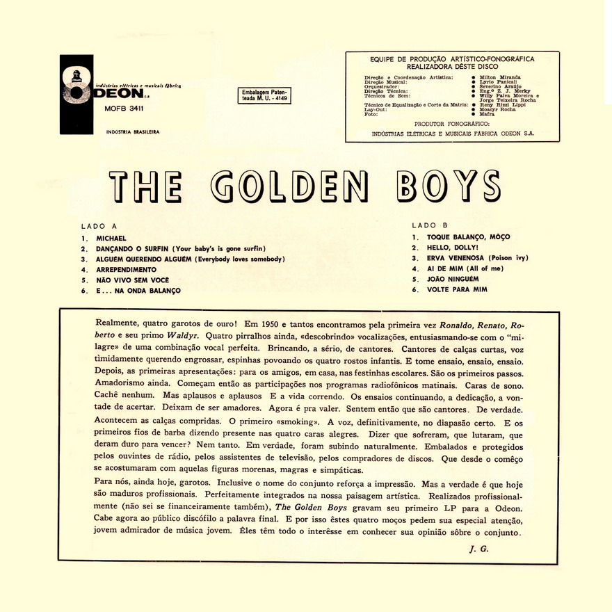 Golden Boys is a Brazilian rock band formed in 1958. They are composed of brothers Roberto, Ronaldo, and Renato CorrĂȘa JosĂ© Maria (members of Trio Esperança) and a cousin, Valdir Anunciação. AnhĂ€nge an diesem Beitrag Dateiname: DateigröĂe: 200.16 KB Titel: Heruntergeladen: 309 Dateiname: DateigröĂe: 183.12 KB Titel: Heruntergeladen: 282