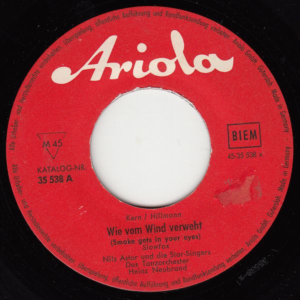 06 59....35 538 A....Nils Astor und die Star-Singers Das Tanzorchester Heinz Neubrand..Wie vom Wind verweht (Smoke gets in your eyes)/Nils Astor und die Ping-Pongs Das Tanzorchester Heinz Neubrand..Sage mir nie