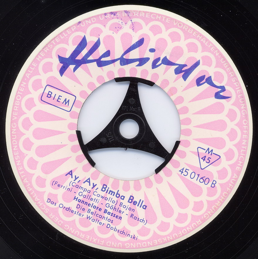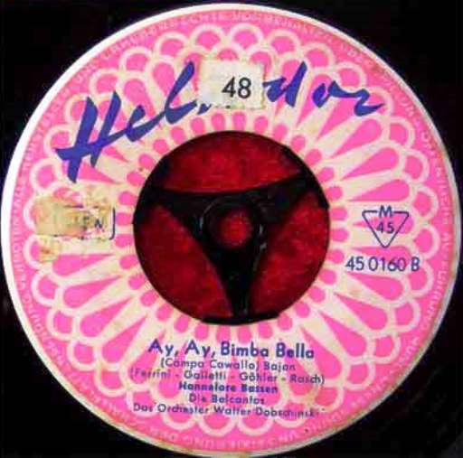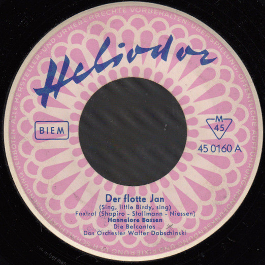 12 57....45 0160 A....Hannelore Bassen Die Belcantos..Der flotte Jan (Sing, little Birdy, sing)/ B….Ay, Ay, Bimba Bella (Campa Cawallo)