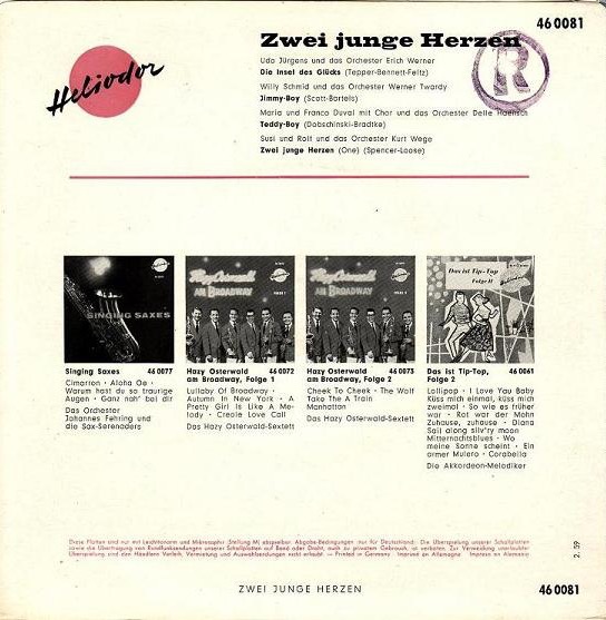 05 61....24 507 A....Susie und Peter Horst Wende u. s. Orchester..Sie war ein Kind der Heide/ B....Drei zärtliche Küsse